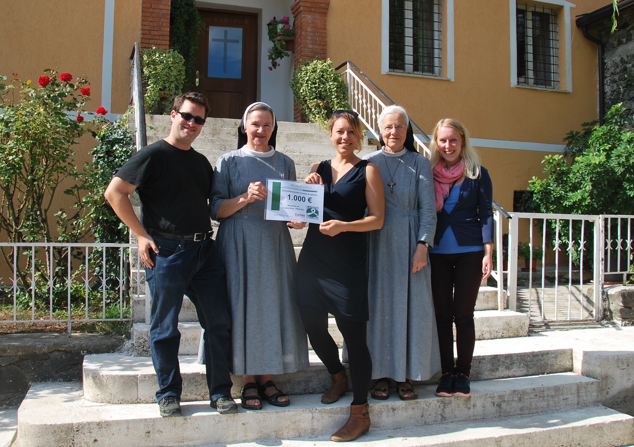 Der Absolventenverband der HLUW Yspertal spendete 1000 Euro für die Sozialprojekte der Schwestern in Fushe Arrez, einem Projekt der Caritas St. Pölten. V. l. n. r: Obmann Stefan Hollaus (aus Hürm), Sr. Bernadette Ebenhoch, Edith Schroll (aus Yspertal), Sr. Gratias Ruf und Nina Schoder (aus Purgstall).