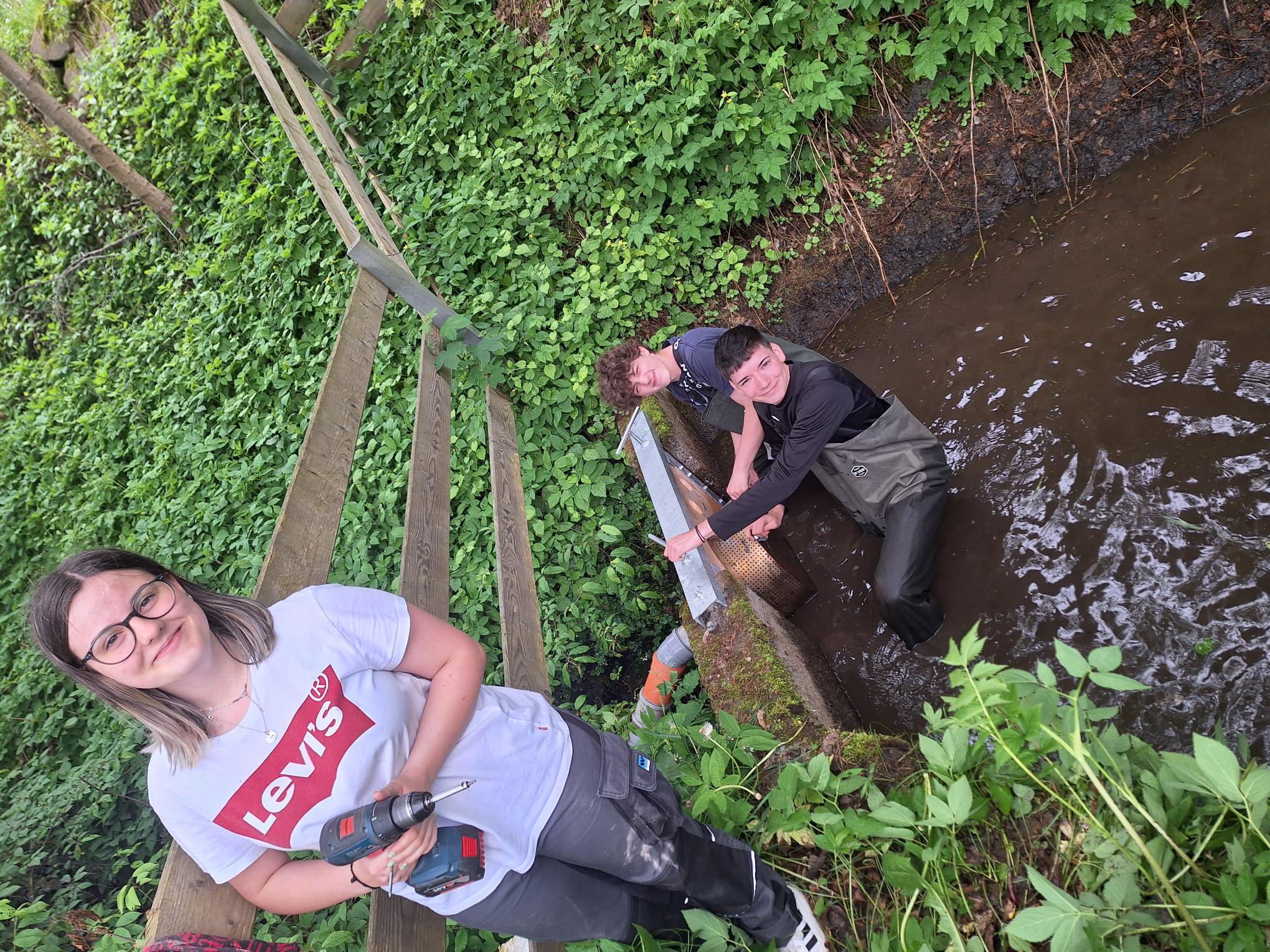 Im Verarbeitungstechnik Unterricht - Praktikum - werden immer wieder Sanierungen von Schuleinrichtungen durchgeführt. Aktuell die Wehr für unseren kleinen Stauraum ... ganz oben im NAWI- Park.